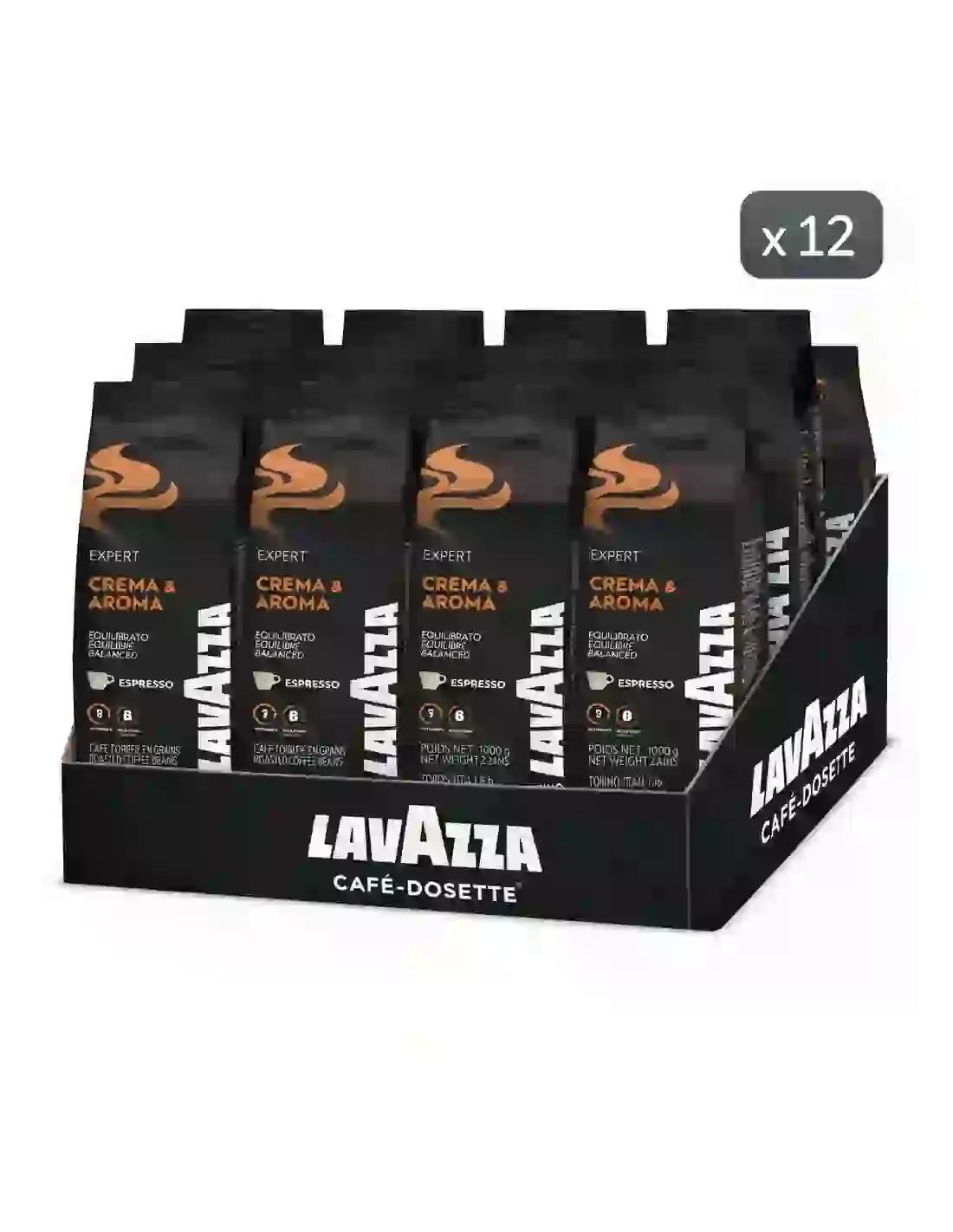 1. Quel est l’avantage du lot 12 x 1 kg Lavazza Crema Aroma ?