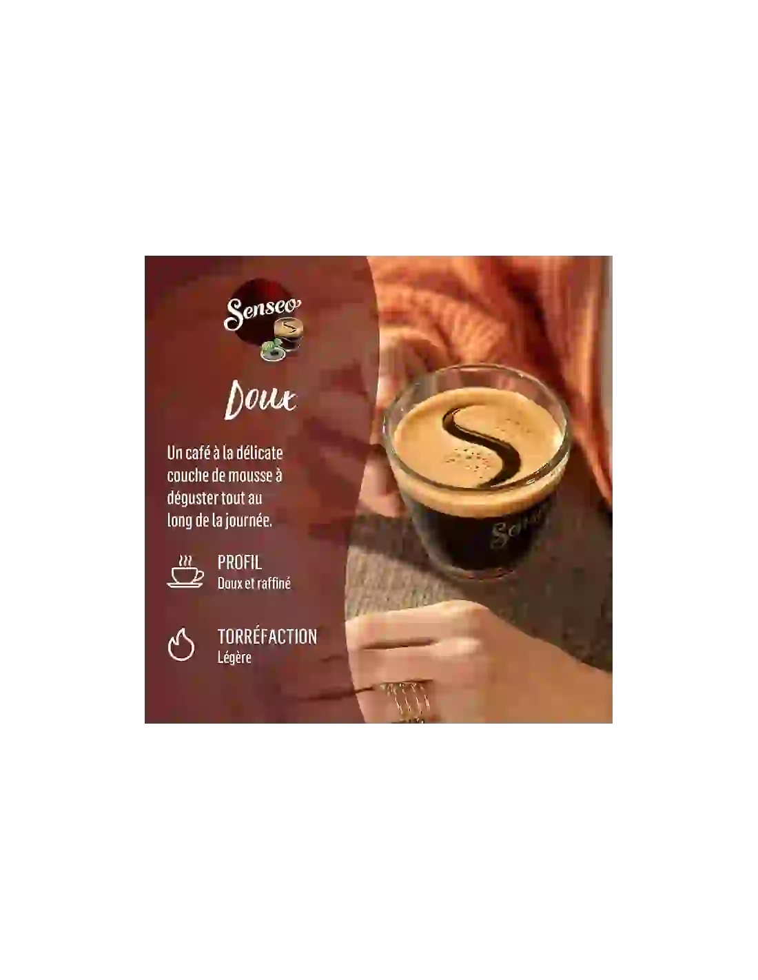 « Le Senseo® Doux en grand format séduit par sa finesse et sa régularité. Un café léger et agréable, parfait pour une consommation répétée sans lassitude »